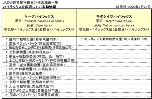 日本動物園水族館協会(日動水・JAZA)の飼育動物検索で、「リカオン」を検索し、その結果を「リカオンのいる動物園」として一覧(リスト)にしてみました。